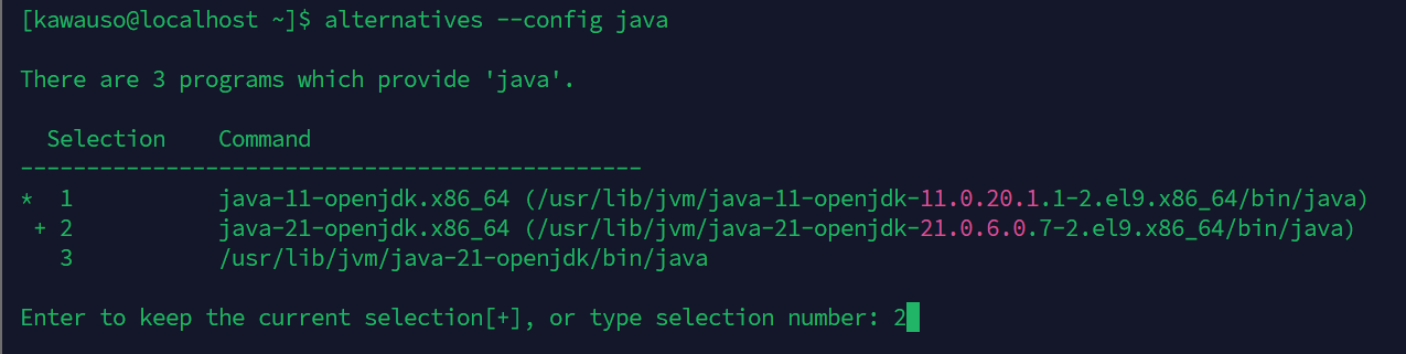 alternatives --config java |