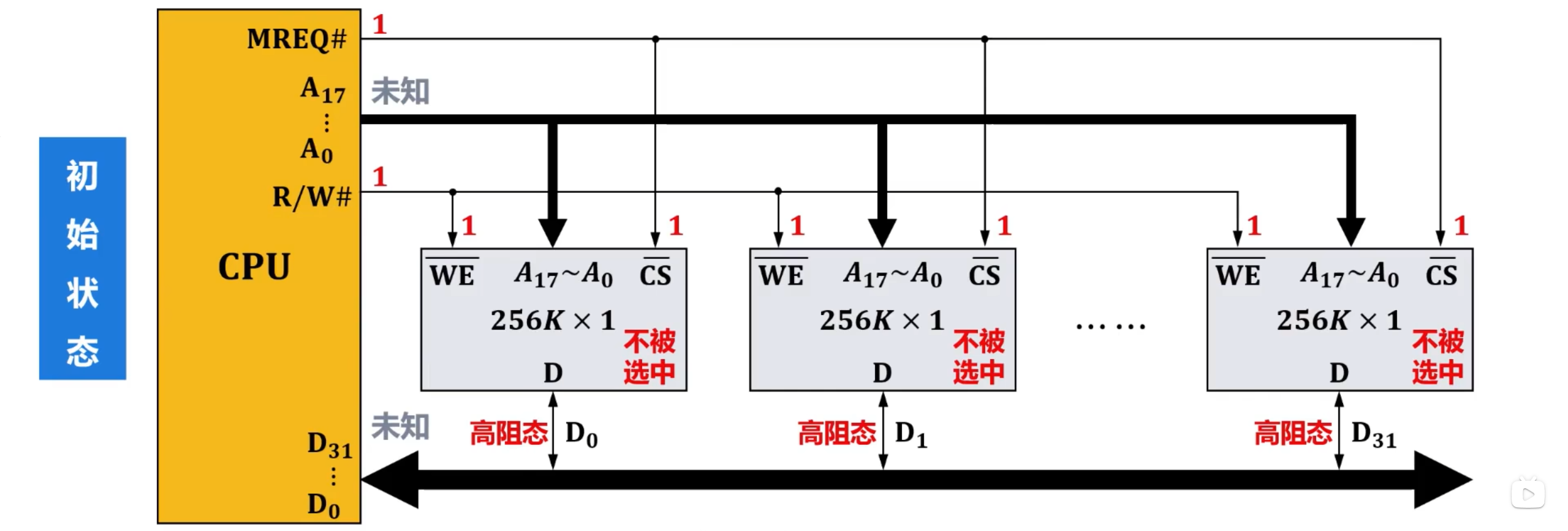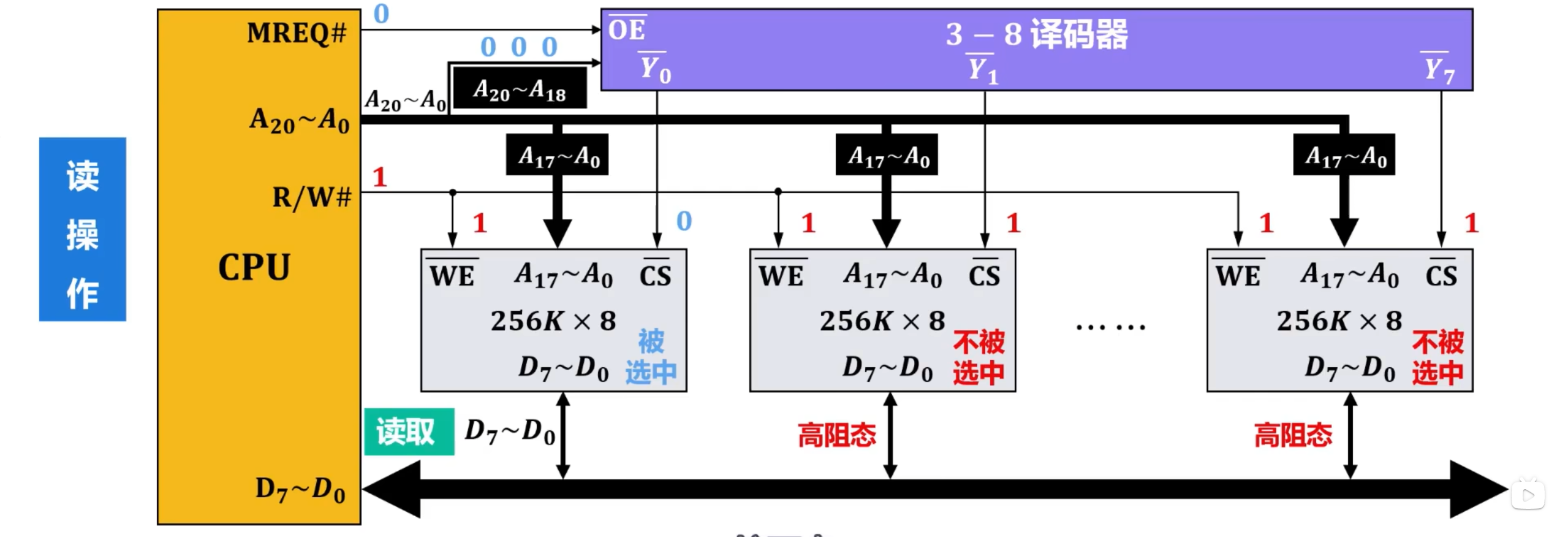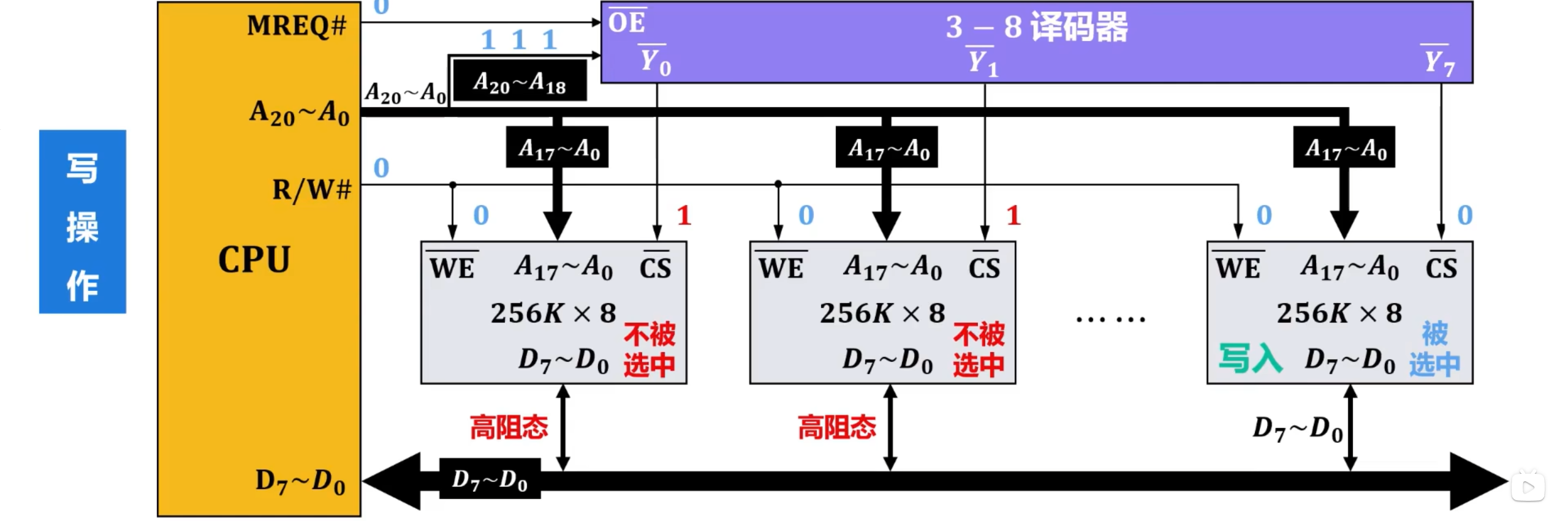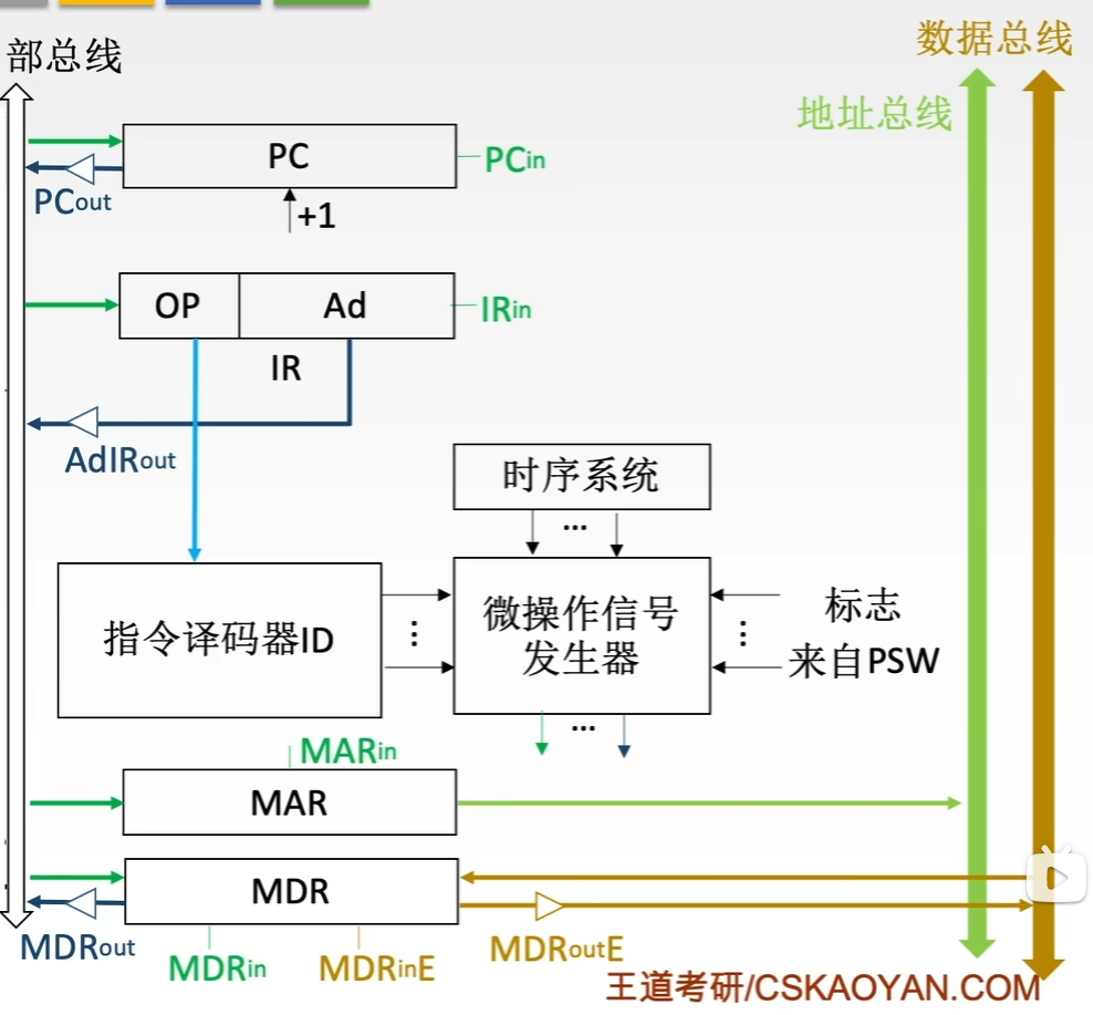 主存(内存)的这种按存储单元的地址来实现对其写入和读取的存取操作,需要在CPU中的控制器的控制下进行。