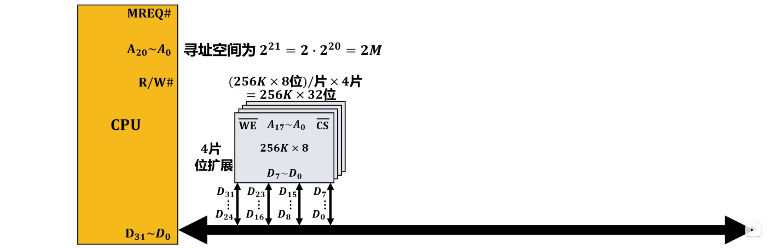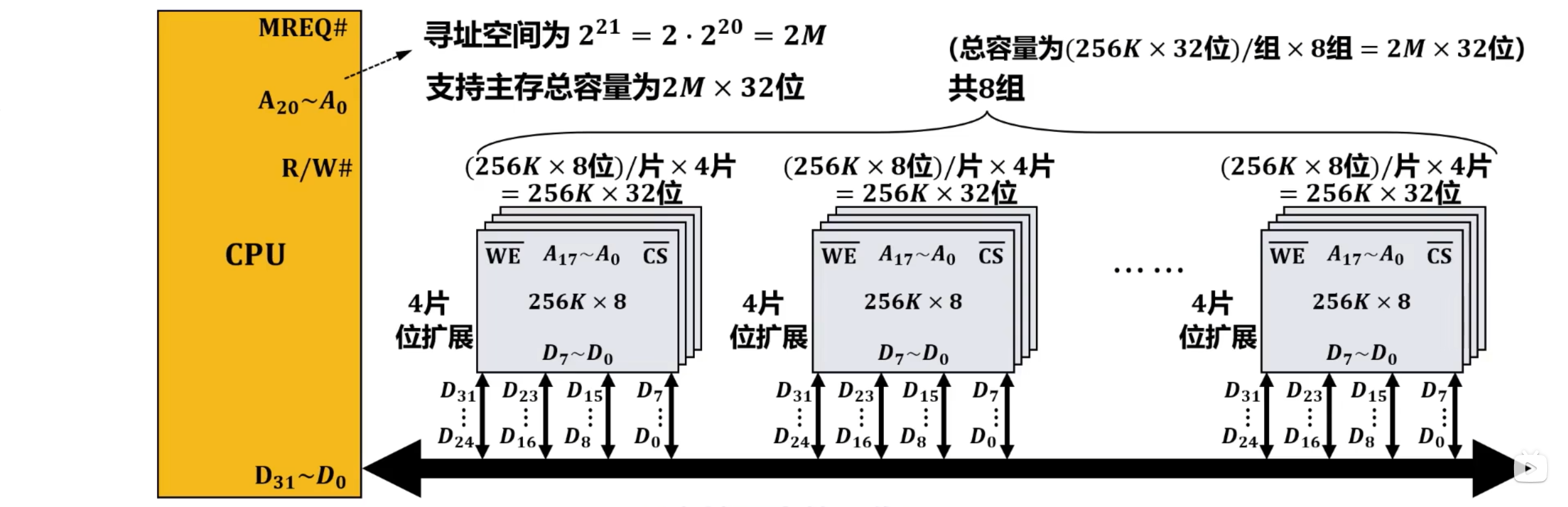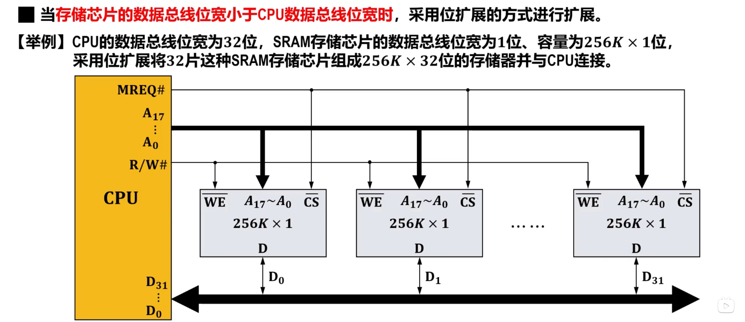 主存(内存)的这种按存储单元的地址来实现对其写入和读取的存取操作,需要在CPU中的控制器的控制下进行。