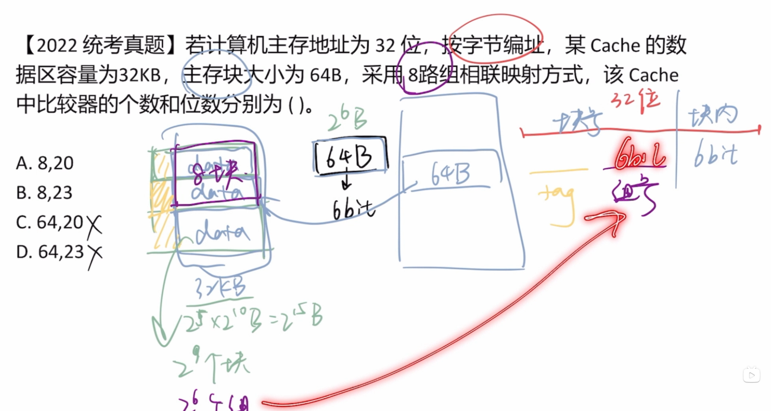 (2)每32位需要查询一次,每秒传送 $2 \times 2^{20}B$