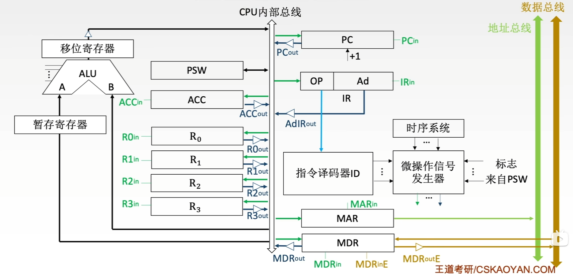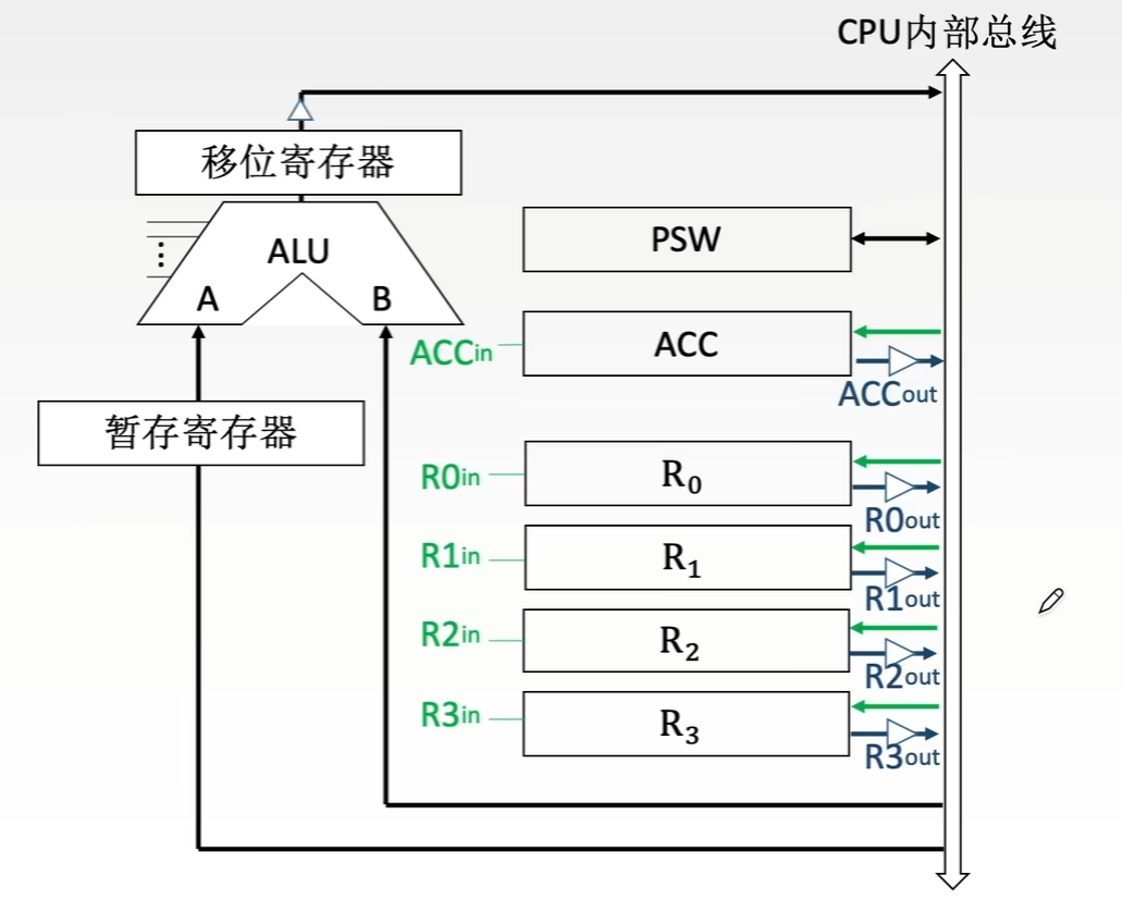 - 片内总线:片内总线是芯片内部的总线。它是CPU芯片内部寄存器之间、寄存器与ALU之间的公共连接线。