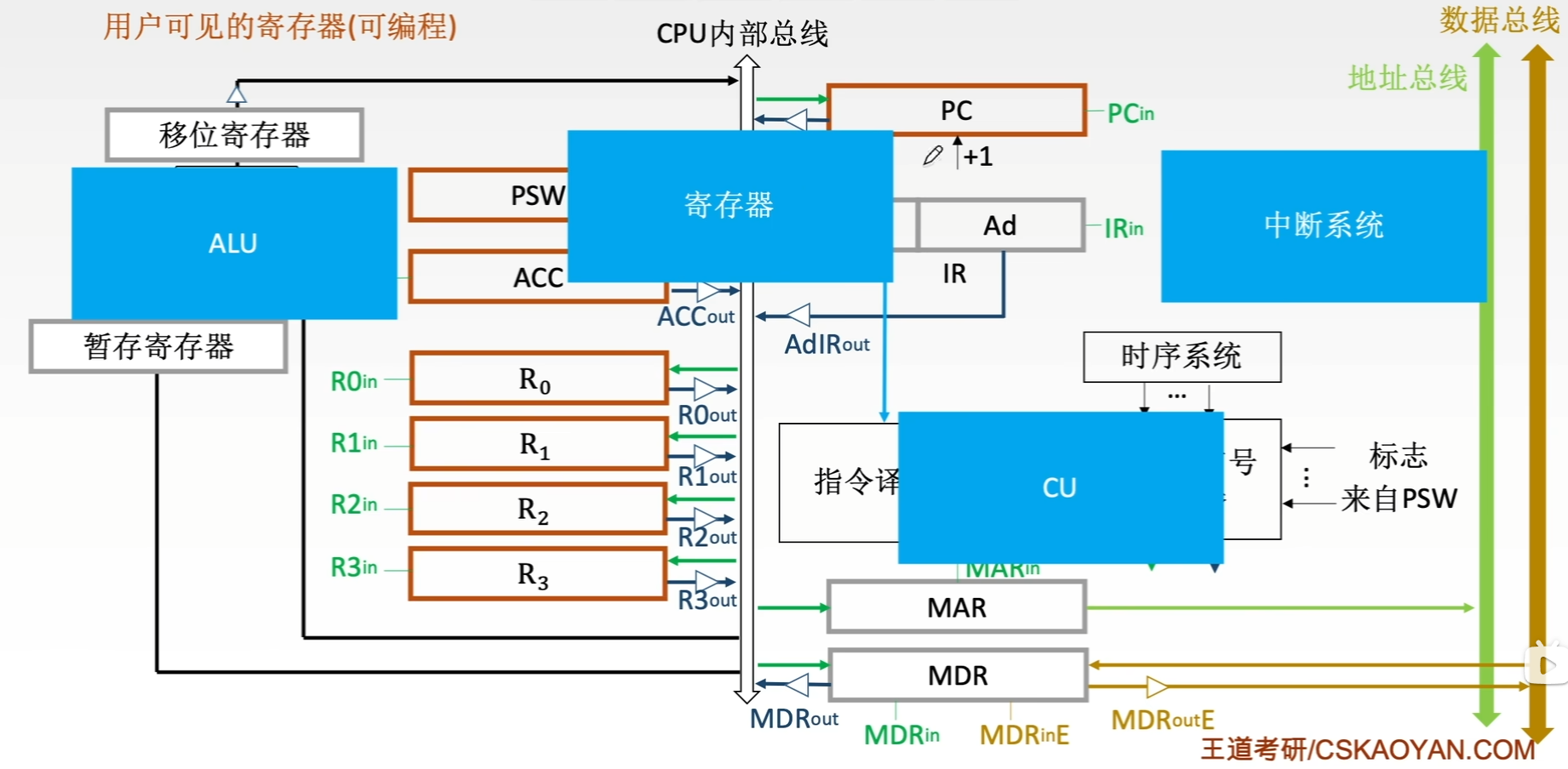 存储器 数据寄存器MDR ,用来 存放从存储体的某个存储单元取出的信息或者准备往某个存储单元存入的信息