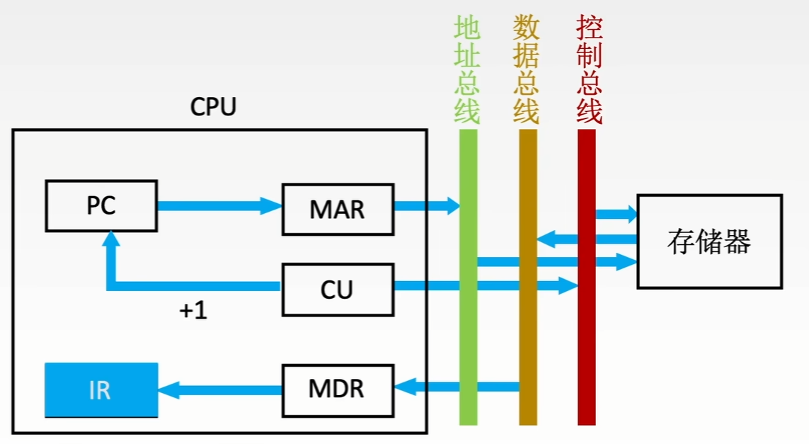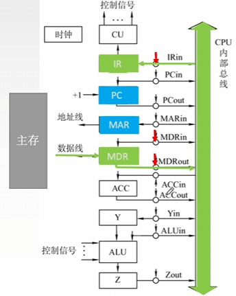 - 控制从主存中读取一条指令,称为 取指 过程(阶段)。