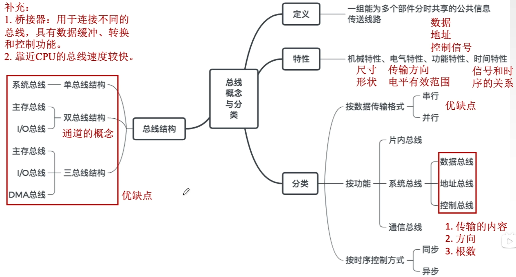 - 功能特性:每根传输线的功能(地址、数据、控制)