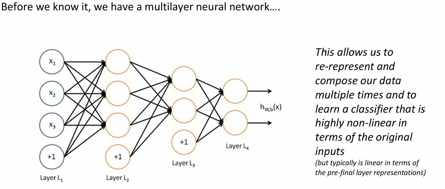 $$ \boldsymbol{e} = [\boldsymbol{e}^{(1)}; \boldsymbol{e}^{(2)}; \boldsymbol{e}^{(3)}; \boldsymbol{e}^{(4)}] $$隐藏层 (Hidden layer): 通过权重矩阵 $W$ 和偏置 $b_1$ 进行线性变换,并经过激活函数 $f$(通常为 tanh 或 ReLU):